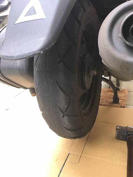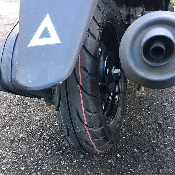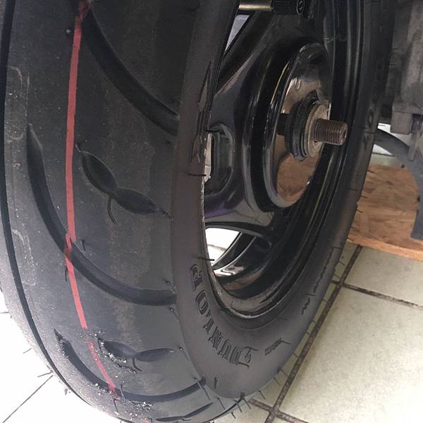 ▲安裝完成,DUNLOP D307 100/90-10裝後輪胎紋,輪胎胎紋中間有水線是我個人喜歡的