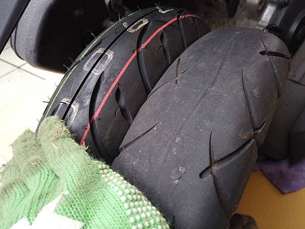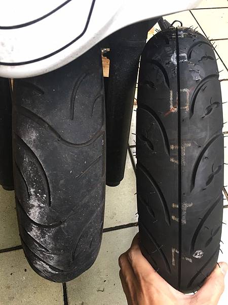 ▲這次一併更換前後輪,上圖左為前輪原廠M6029使用約15000km,圖右為後輪 建大K433F使用約6700km