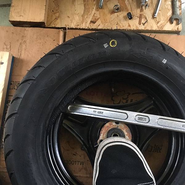 機車輪胎 出廠日期 這條DUNLOP D307是19年31週的胎也是很新的(輪胎側邊標記3119)用拆胎棒拆輪胎是滿快的,大約二十分鐘內拆裝輪胎就可以完成。前輪就比較麻煩一點,因為我會把碟盤卸下來順便清潔卡鉗花了一點時間。