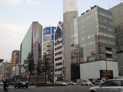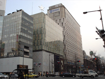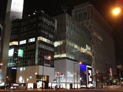 白天的SOGO 旁邊是FENDI、DIOR和CHANEL 後面是有古老建築外觀滴大丸百貨